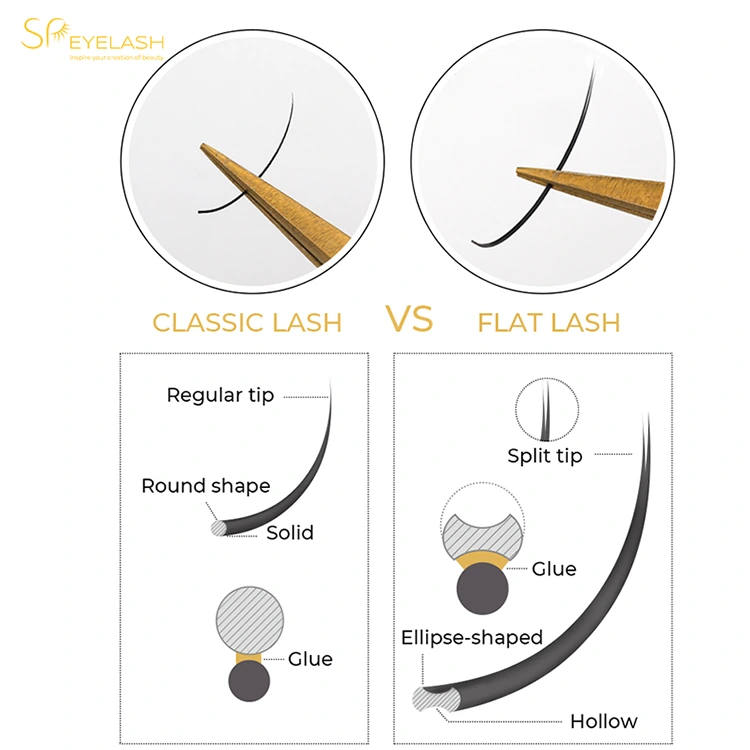 Ao contrário dos cílios redondos tradicionais, esses cílios planos apresentam uma base única de romboide que cria uma aparência retangular com lados de curva interior. Esse design é alcançado através da compressão durante a fabricação, tornando -os aproximadamente 40% mais leves que os cílios regulares, fornecendo a mesma densidade.