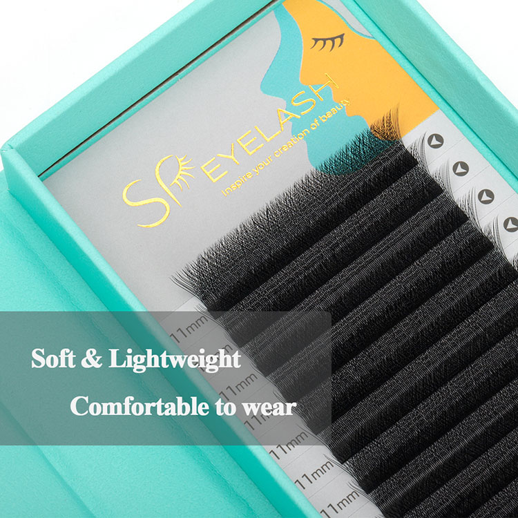 1. Design exclusivo:As raízes de 6 extensões de cílios individuais são unidas em forma de W. O design especial em forma de W das extensões de cílios 6D W da SP EYELASH faz com que seus cílios pareçam mais grossos e charmosos.