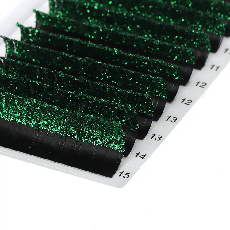 A extensão dos cílios de glitter verde é infundido com glitter fino de nível cosmético, que refrata a luz verde natural sob iluminação. Seja para a aparência diária de maquiagem ou festa, certamente se tornará o foco. É também a ferramenta perfeita para criar maquiagem de cosplay de anime e é adequada para ocasiões como casamentos, fotografia, festas de boate e eventos importantes.