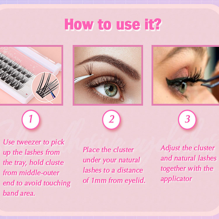 Design inovador para aplicação sem esforço: os conjuntos de cílios pré-colados da SPEYELASH mudam completamente a maneira como você cola cílios postiços. Não precisamos de nenhuma cola adicional para cílios. Esses aglomerados de cílios podem ser facilmente fixados e removidos, proporcionando um uso mais limpo e descomplicado. Não há mais necessidade de lidar com confusões e possíveis erros ao usar cola. Esta é uma experiência totalmente nova e conveniente que economiza tempo e energia.