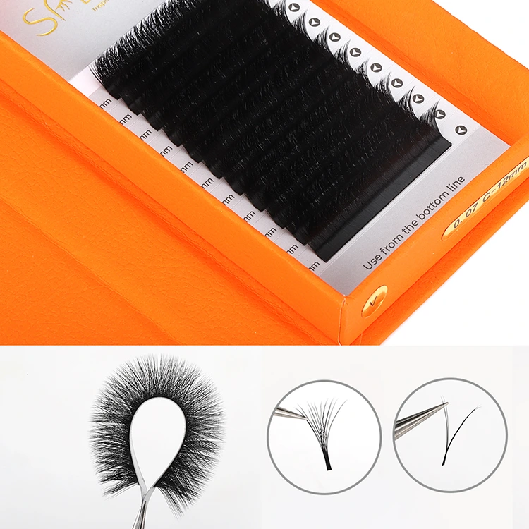 A característica decisiva dos cílios encaracolados em forma de V é sua multifuncionalidade. Oferece outros estilos como W, YY e icônico em forma de V, além de especificações diferentes de 3D a 6D, facilitando a criação de cílios falsos macios de acordo com as necessidades dos clientes.