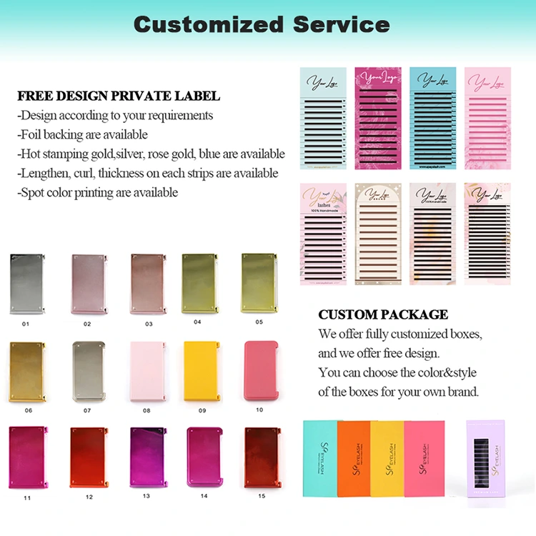 O SP Sylesh oferece uma ampla gama de opções de personalização para golinhos de cílios em forma de V, incluindo marcas e embalagens proprietárias, baixa quantidade mínima de pedidos e suporte gratuito de design. Antes de fazer um pedido em massa, teste com confiança a qualidade usando amostras gratuitas disponíveis.